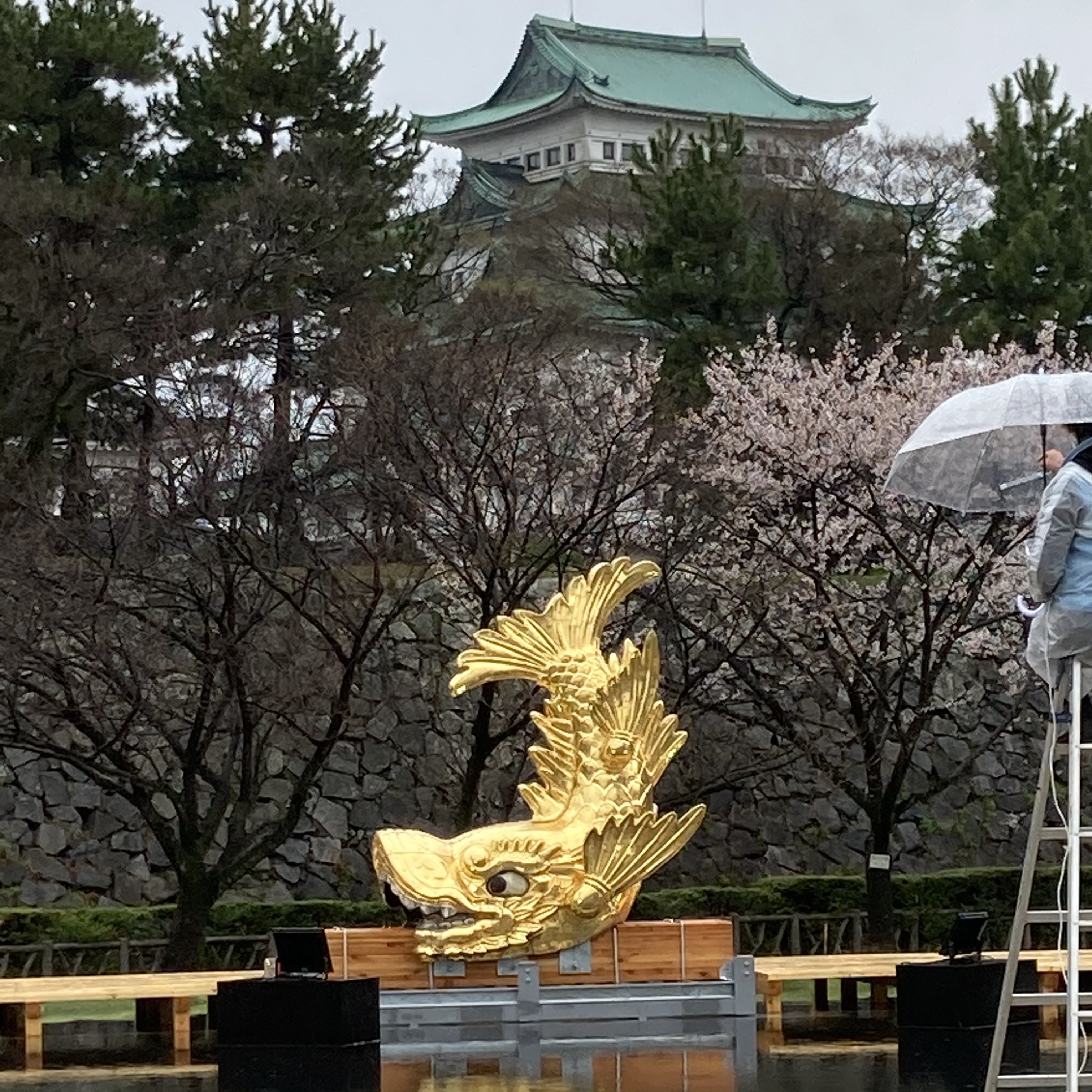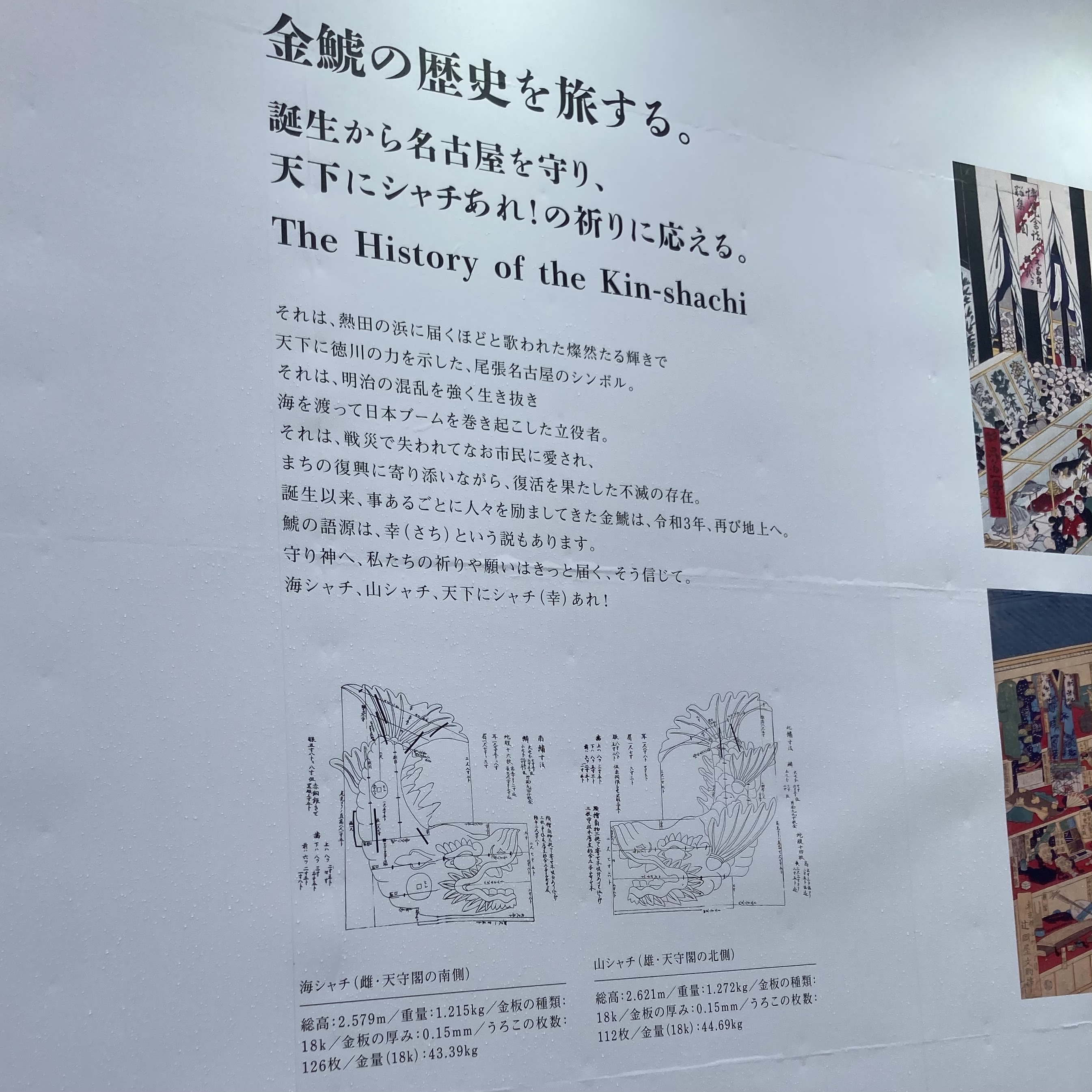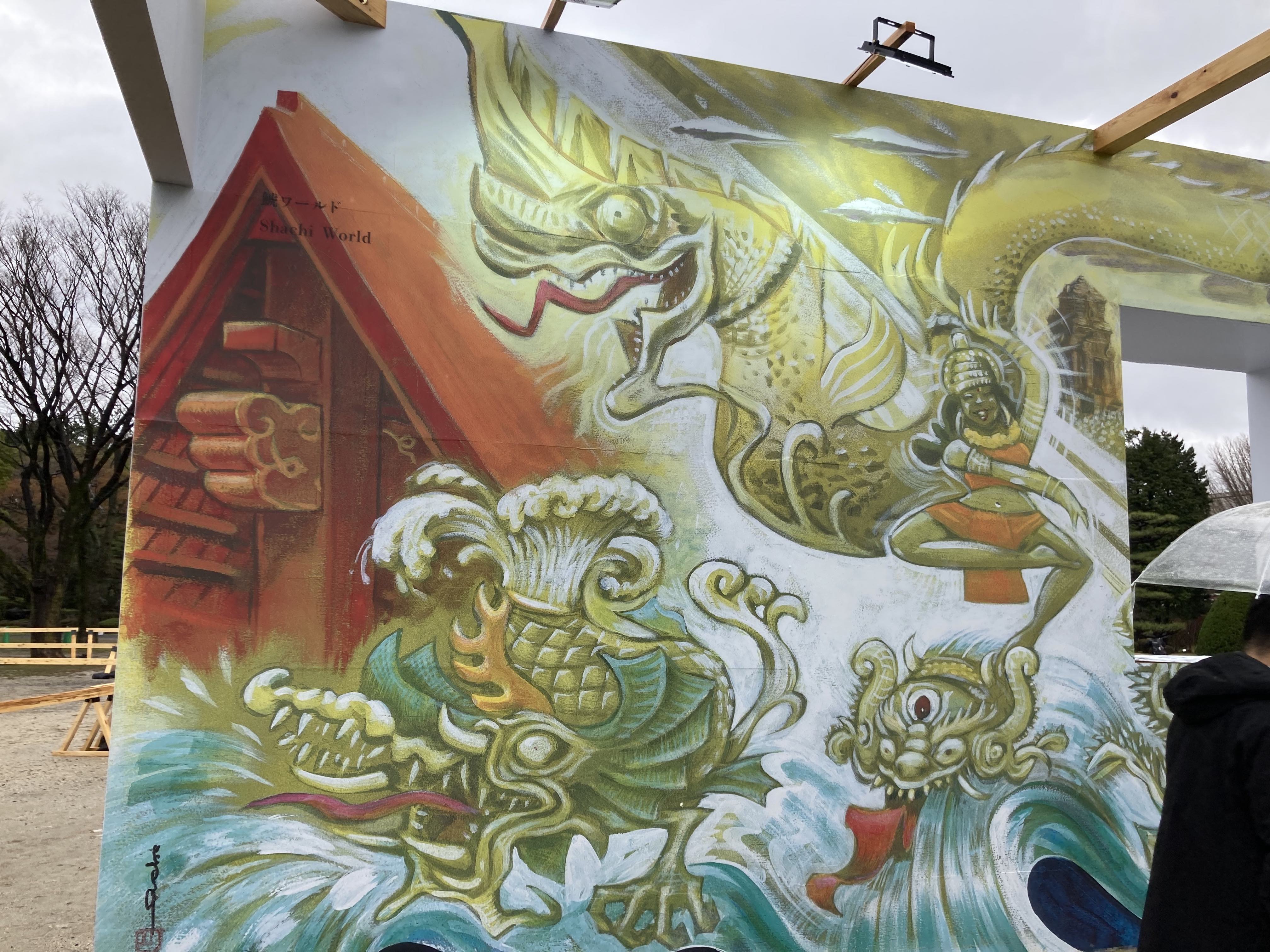 2021/03/27 Category : Reports 名古屋城 金鯱展2021 【公式】名古屋城 金鯱展 [守り神降臨、海と山の祈り] 名古屋城のシンボル・金シャチが、16年ぶりに地上で展示とのことで行ってまいりました。こんな画像でも後年何かの参考になるかな……と思ってアップロードします。 展示解説。 1枚めに載せたのがオスの山シャチ。砂山に載せられています。↓がメスの海シャチ。池に浮かべられています。 シャチホコを前にはしゃぐわたくし。 海シャチ、山シャチについての解説。 イラストレーター2yangさんによる壁画。「鯱ワールド」「妖怪ワールド」の2枚。空いている窓から山シャチが覗ける趣向です。 シャチホコがなくなって、なんだかまぬけな印象の名古屋城。 名古屋城での展示は2021年3月20日(土祝)〜4月2日(金)。2021年4月10日(土)〜7月11日(日)は栄・ミツコシマエ ヒロバスで特別展覧が行われます。【公式】名古屋城金シャチ特別展覧 特別展覧の方は刀剣乱舞とのコラボもあるので、こちらも行きたいな〜と思っています。 [0回]PR